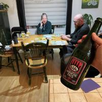 Bière rustique élevée en foudre et refermentée sur l'Aronia de la ferme.